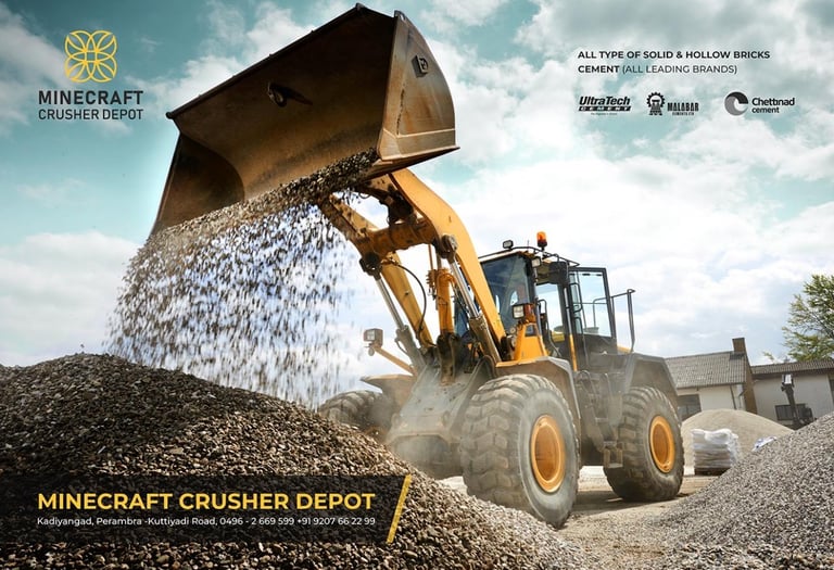At Minecraft Crusher Depot, we are dedicated to providing high-quality construction materials for all your building needs. From top brands of cement to various types of solid and hollow bricks, we ensure you get the best materials for your projects. Our comprehensive product range includes WET MIX (WMM), GSB, boulders, quarry waste, dust, M Sand Grade 1 & Grade 2, P Sand Grade 1 & Grade 2, 6MM, 12MM, 40MM aggregates, C Sand, conveyor waste, and slurry.
